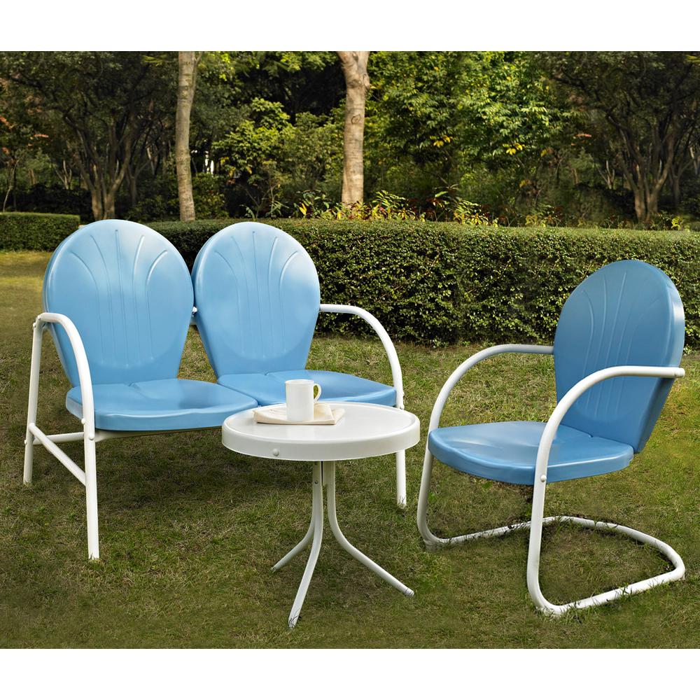 griffith 3pc outdoor metal conversation set sky blue gloss/white satin - loveseat, chair, & side table