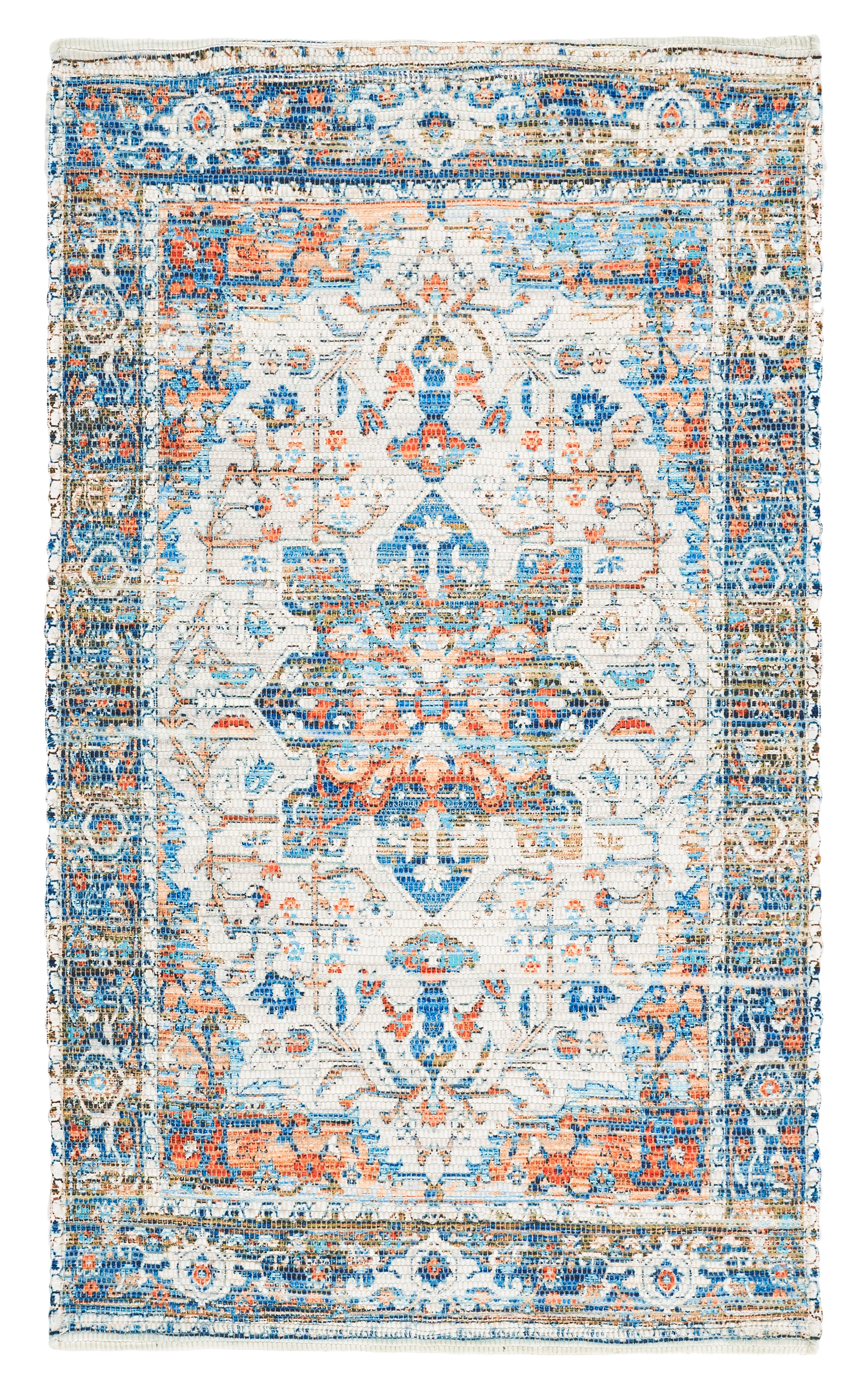 Exquisite designs and a color palette sure to inspire creativity, the Saffron Collection of area rugs is an exciting way to add brightness to any room. Evoking relaxation with its breezy cotton fibers, this hand-loomed flatweave rug works beautifully in coastal, contemporary, southwestern, bohemian, and casual settings. Rug has an approximate thickness of 0.35 inches.